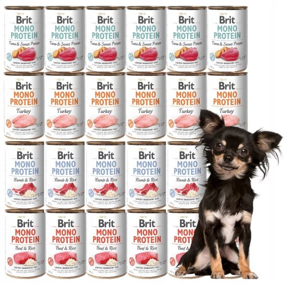 BRIT MONO PROTEIN LAMB & RICE TUNA BEEF TURKEY 24x400 g ZESTAW PUSZEK