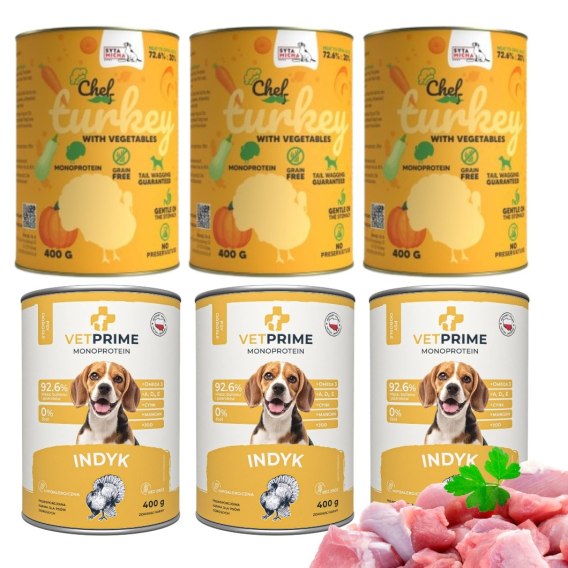 MOBOBIAŁKOWA Syta Micha CHEF VETPRIME TURKEY Indyk PAKIET PRÓBNY 6X400g
