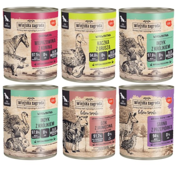 🐶 ZESTAW WIEJSKA ZAGRODA 6x800 g - MIX SMAKÓW (PREMIUM)